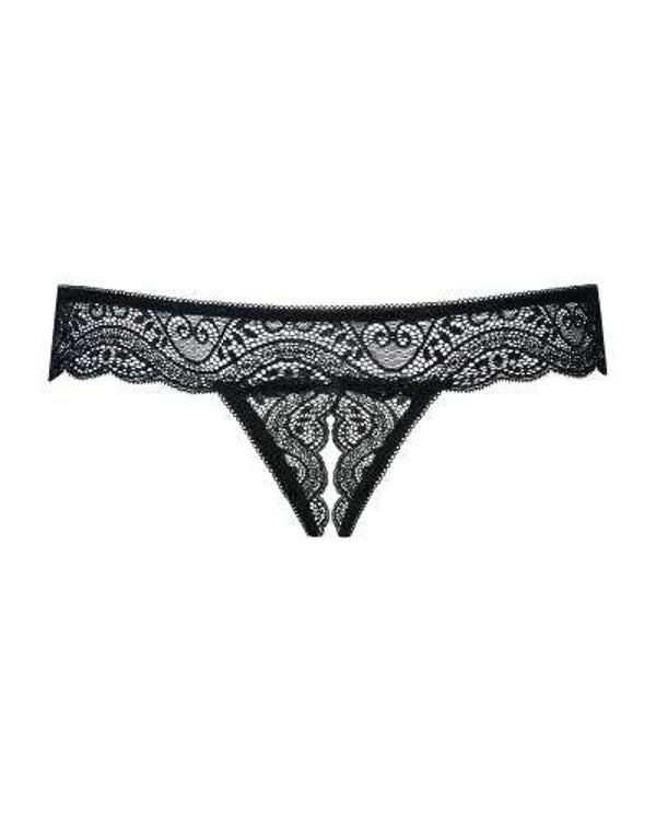 Deze kanten string heeft een luxe uitstraling en een open kruisje voor een uitdagende look. Het materiaal is elastisch voor een perfecte pasvorm.