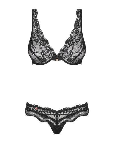 Deze Luvea set van Obsessive heeft een verleidelijke kanten bh met verstelbare bandjes en een haaksluiting. De bijpassende string heeft een mooie V-vorm en geeft jouw billen een sexy look. Deze set kun je ook prima onder je kleding dragen.