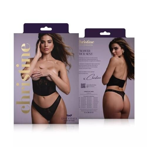 Deze verleidelijke onderborst korset van richt je blik op een bijzonder sensuele manier naar het midden van je lichaam. Het korset is uitgevoerd met 6 baleinen en sluit met een haakjessluiting voor een perfecte pasvorm. Of je het nu over een mini-jurk draagt of netjes op de blote huid, dit mooie stuk geeft je uiterlijk net dat beetje extra. Mix van imitatieleer, kant en fijn net. Bijpassende string met open kruis.